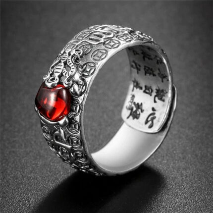 Natural Garnet Pixiu Ring – Feng Shui Wealth Ring