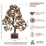 Mesmerizing Design: Delicately sculpted to mimic the organic grace of a tree Size: 10-12 Inch. our crystal tree showcases a symphony of intricate branches adorned with lustrous Tiger Eye gemstones. each reflecting the light with a captivating allure.