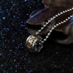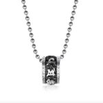 Embossed on the titanium steel pendant is the Six True Words mantra of the Buddhist tradition.