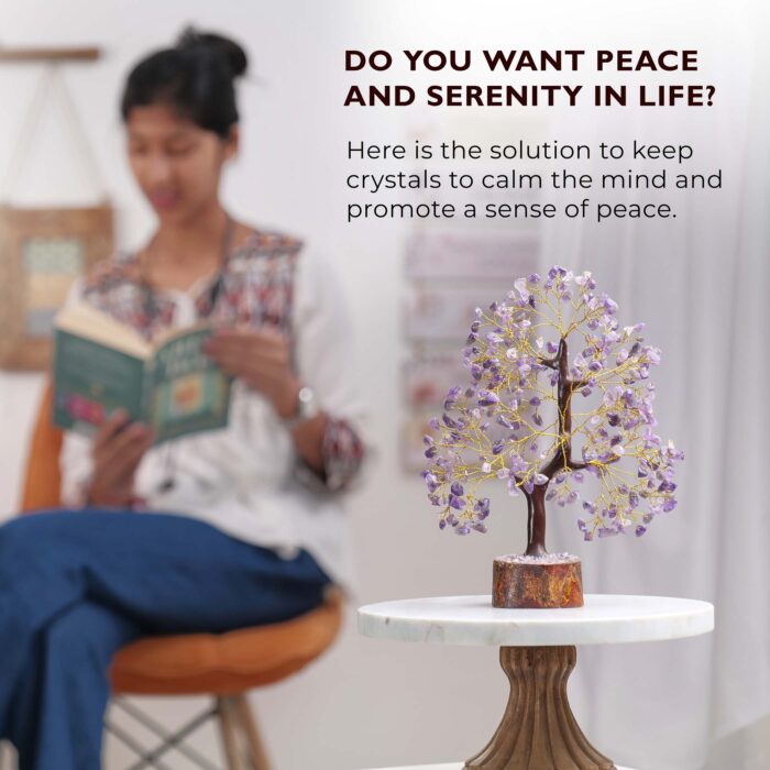 - Unique Handcrafted Design: Each tree is a masterpiece of craftsmanship. with artisans carefully selecting and arranging amethyst crystals to create a lifelike and harmonious structure. This attention to detail ensures that every gemstone tree is a unique piece. reflecting the beauty of natural variation.