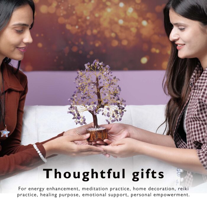 - Multifunctional Decorative Piece: Beyond its aesthetic and spiritual appeal. the amethyst gemstone tree serves multiple purposes. It can be used as an elegant decorative item in homes. offices. and meditation spaces or as a thoughtful and meaningful gift for various occasions. embodying both beauty and symbolic significance.